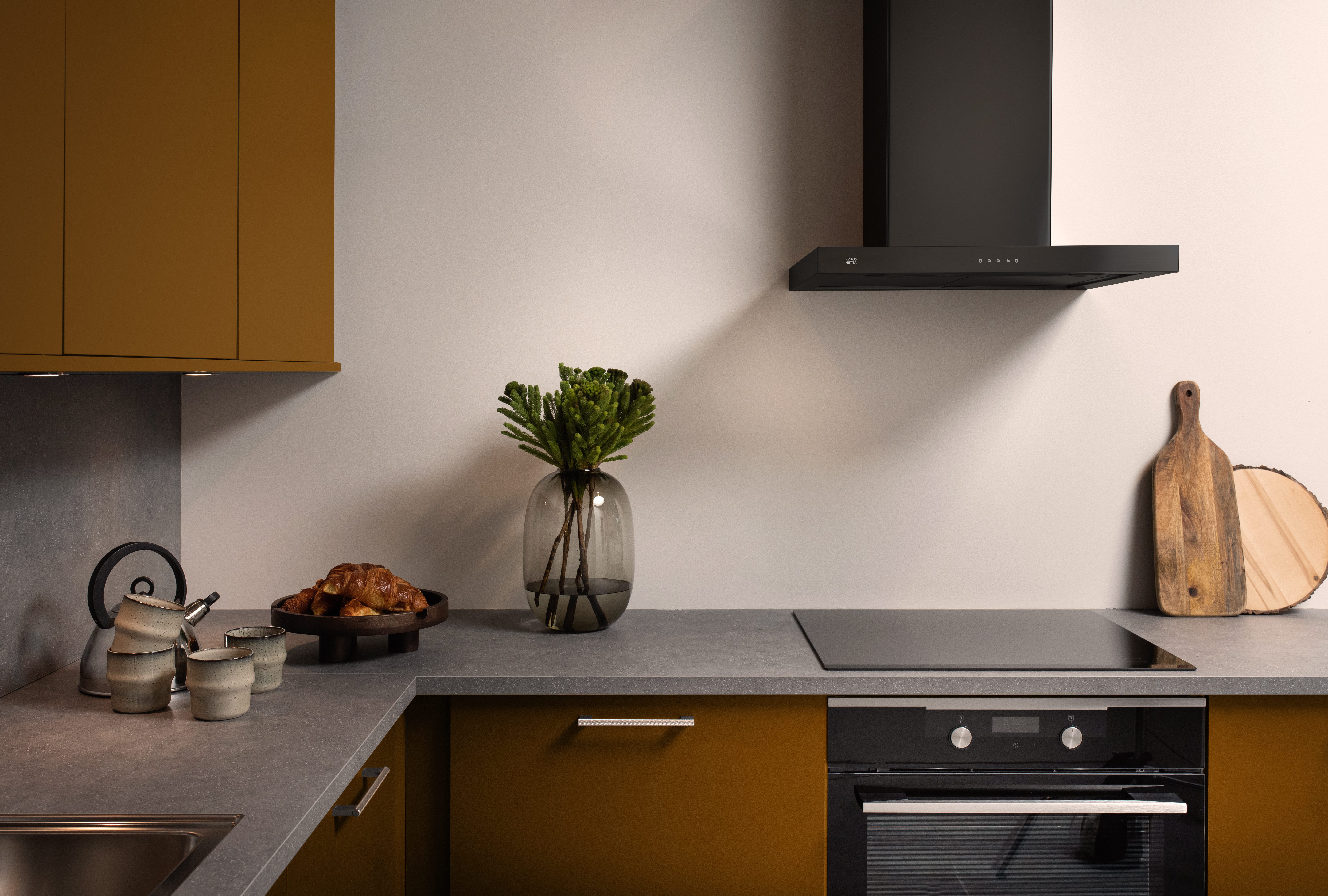 Merkur is available in a width of 60 or 90 cm. The black hood contrasts beautifully with a lighter coloured kitchen, or with matching black appliances.