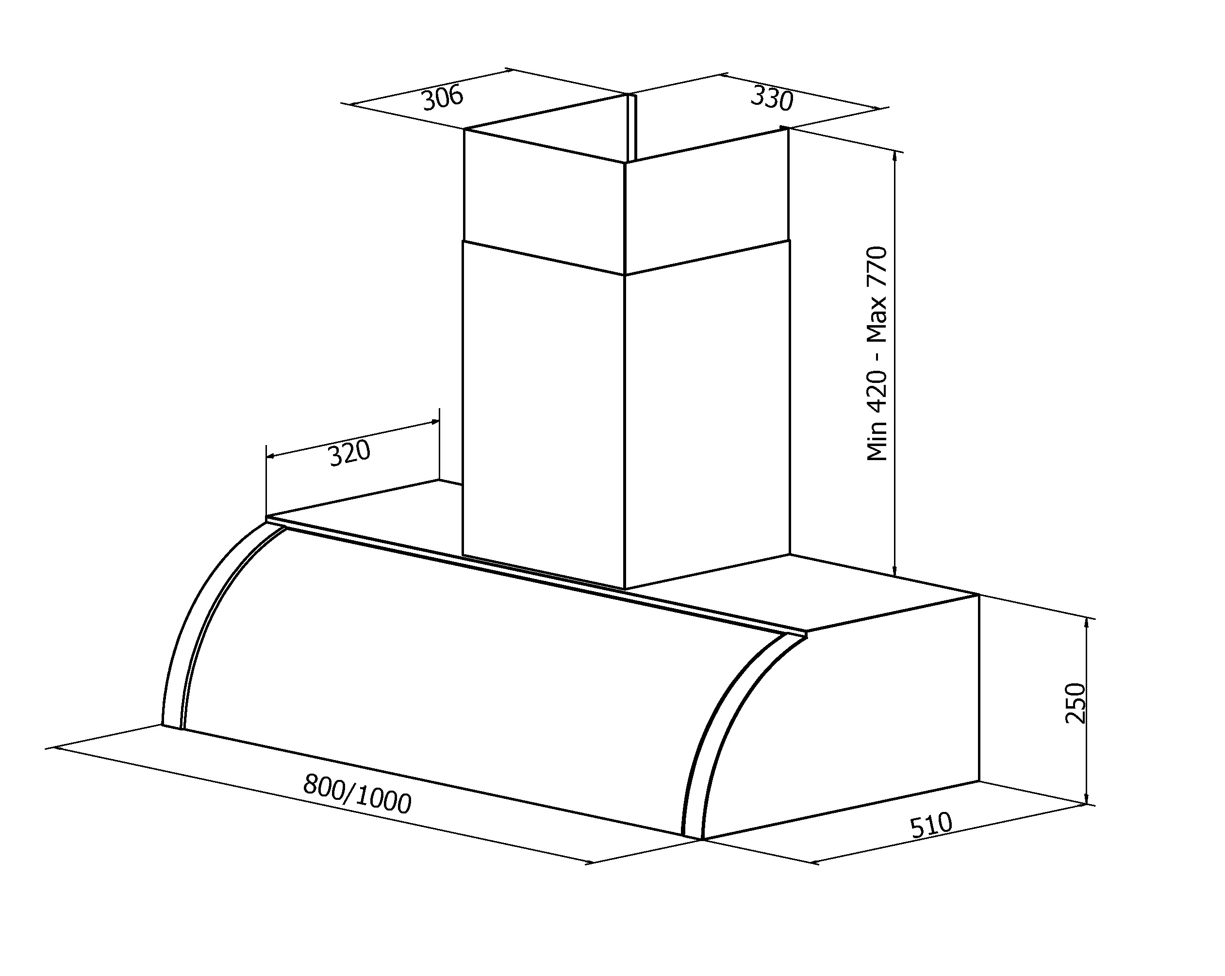 Often, the actual extraction is half of the motor capacity, due to poor installation. Use ducting that creates the least possible resistance. This means using ducting that is as smooth as possible inside with as few bends possible. In the case of flexible ducting, make sure the ducting is taught. Try to keep the distance of the ducting as short as possible. In situations where the distance is large and requires lots of bends, it’s best to get a hood with the highest possible extraction to compensate for the loss.