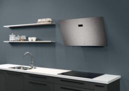 The hood itself can be made in any colour and the edge strips can be supplied in various metals. Playing around with colours and finishes gives you the freedom to go for something unique and modern, or something more classic or vintage-style. The hood can be stand-alone without the chimney to allow you to integrate the hood under a wall cabinet.