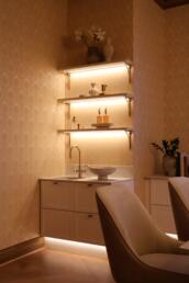 Messing har også den fine egenskapen at det eldes vakkert. Det passer like godt til klassiske elementer som til rene, moderne flater, og skaper en balanse som gjør at kjøkkenet føles lunt og gjennomført – ikke stramt eller kaldt.