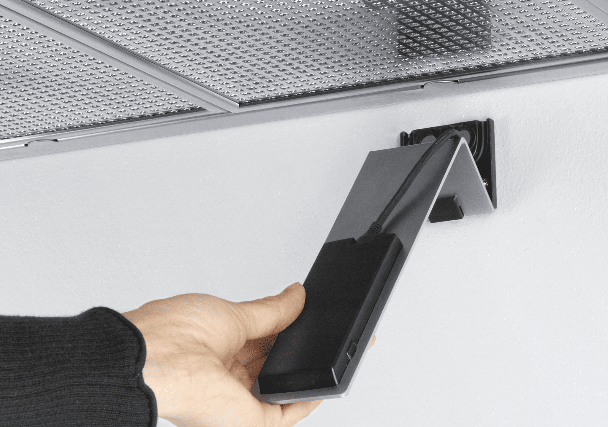 Siro universal komfyrvakt med veggbrakett. Monteres på undersiden av kjøkkenviften.