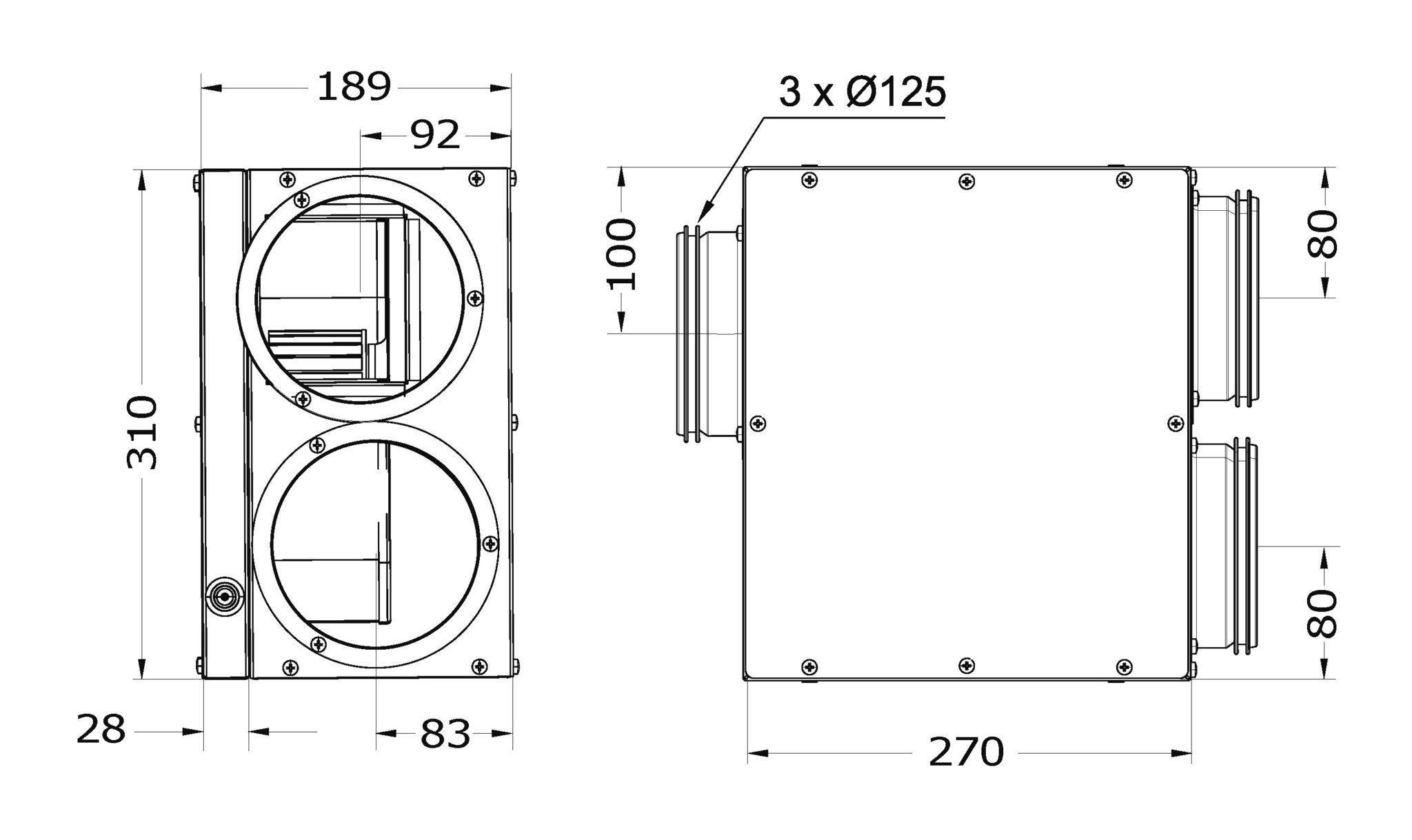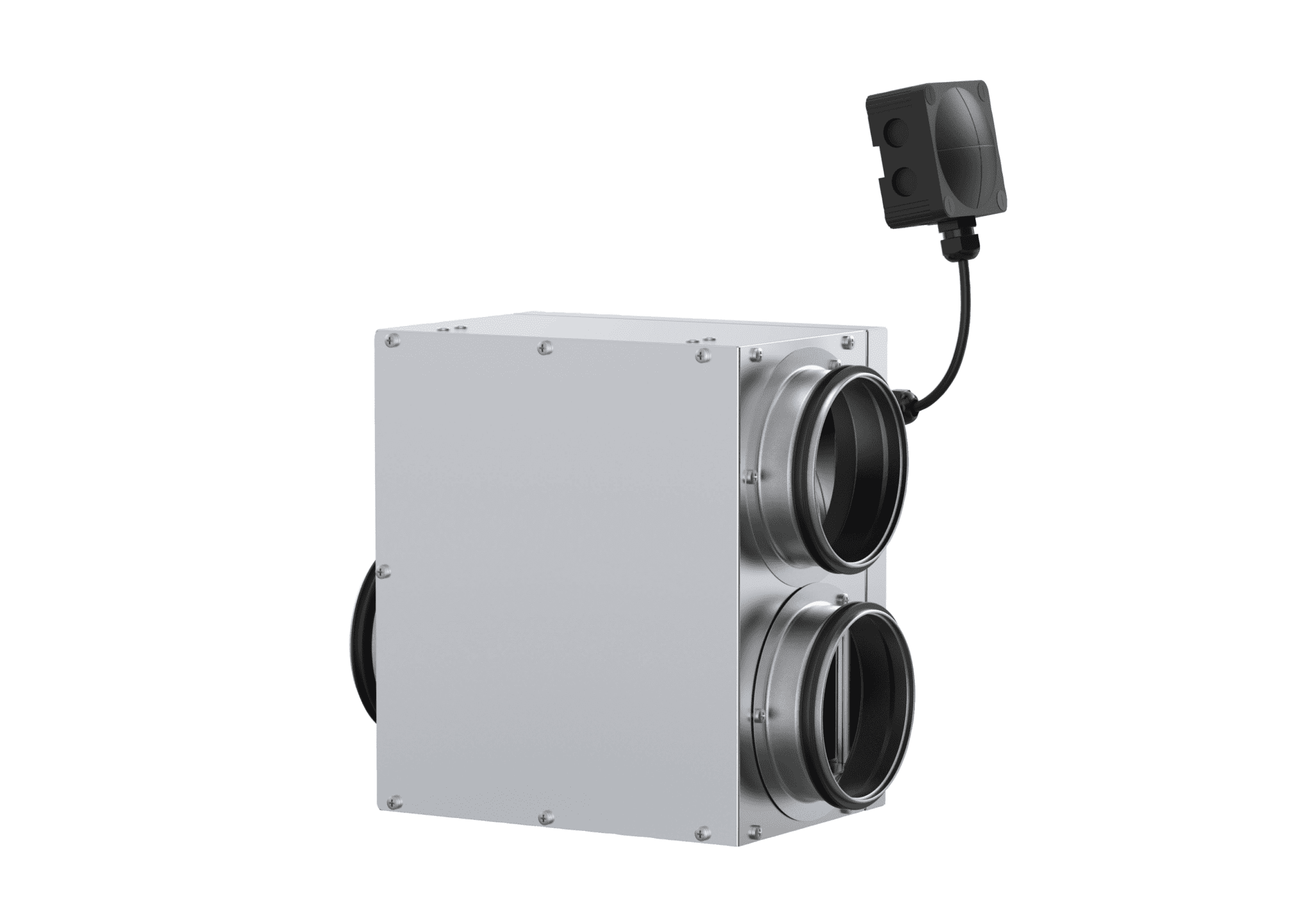 Avtrekksviften leveres med braketter for oppheng på vegg, samt skumplastdempere for gulvmontasje. Små ytre byggemål gir enkel og fleksibel montasje. Viften er utstyrt med kabel på 80 cm og skjøtekontakt for sikker og rask tilkobling til og regulering fra din kjøkkenhette.