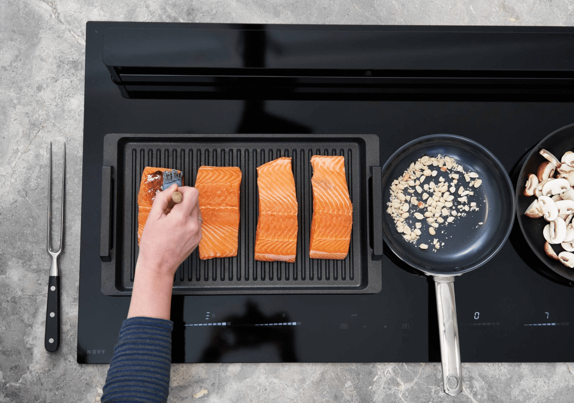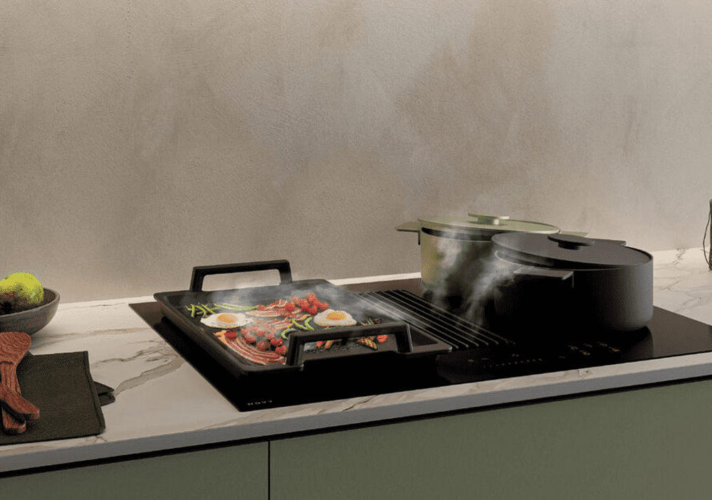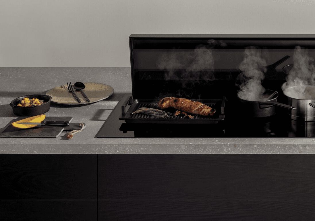 Grillplate til induksjonstopp som fungerer godt sammen med våre benkeventilatorer Panorama 90 og 120, Easy 65 og 80 og Easy Pro, men også på nyheten Undercover.