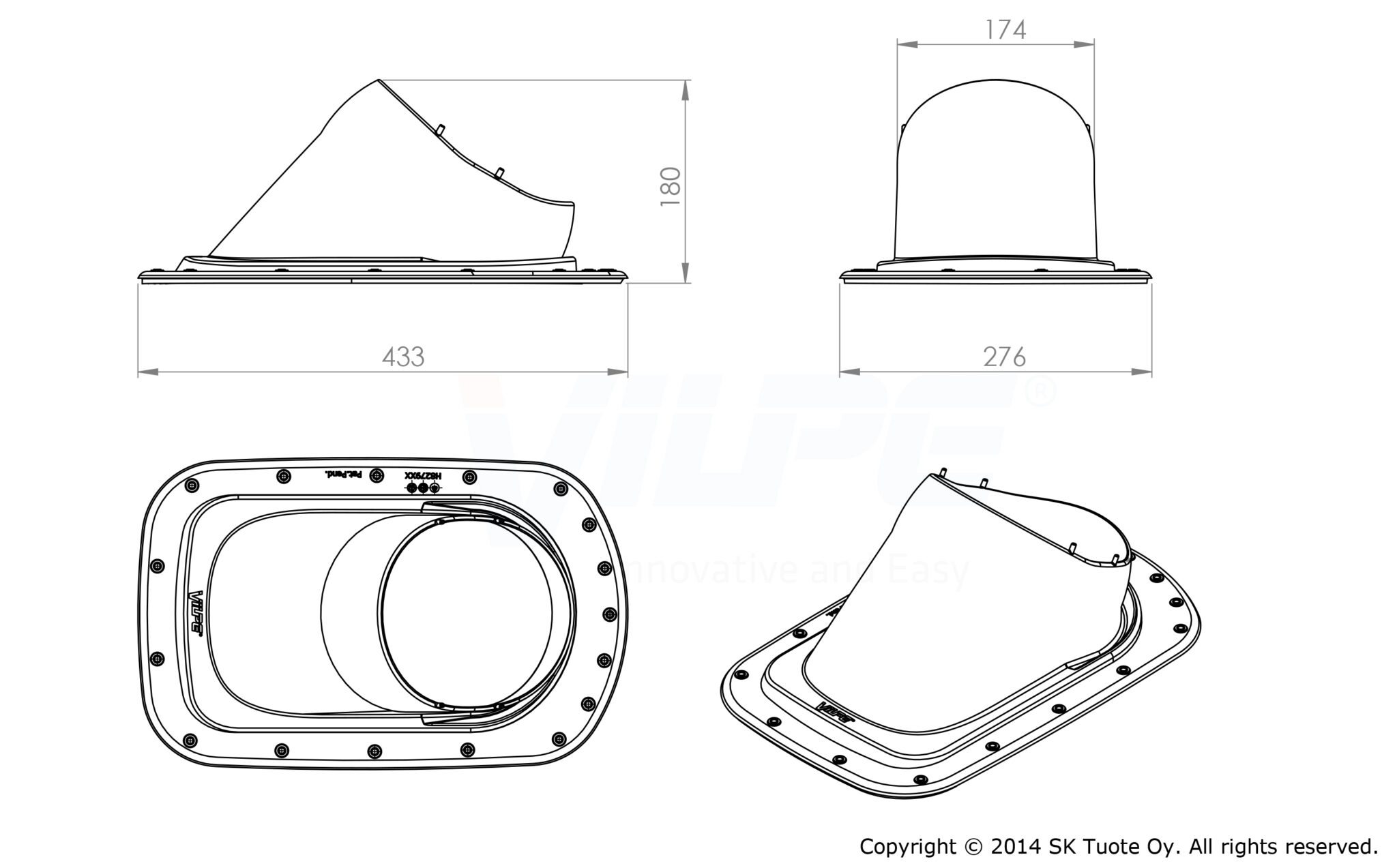 Bruk: Blåser oppover og er en energieffektiv isoleret takvifte med FLOW-hatt med EC-motor samt sikkerhetsbryter, styres via eksternt 0-10 V styresignal. Maks mengde 263 l/s (947 m3/t). Max rek taklutning 52°..